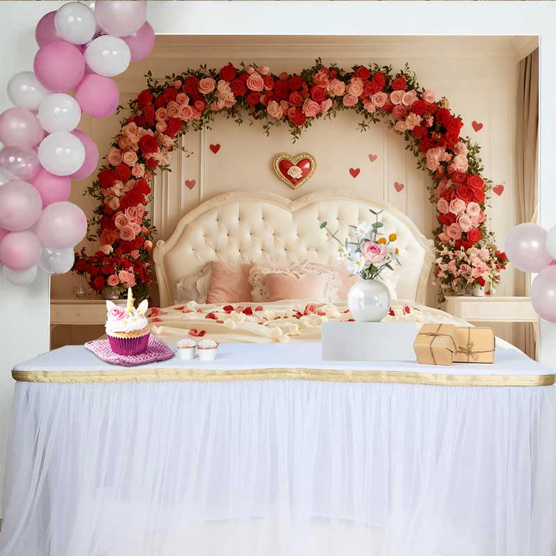 Lofaris Valentine's Day Backdrop, Romantic Bedroom Red Rose Floral Arch Headboard Prop