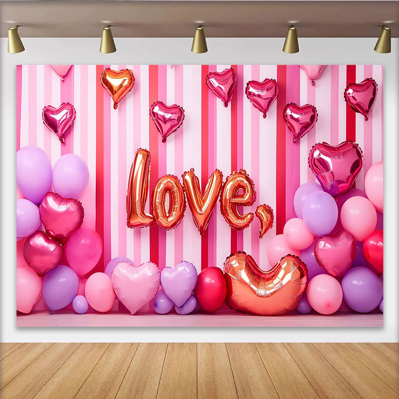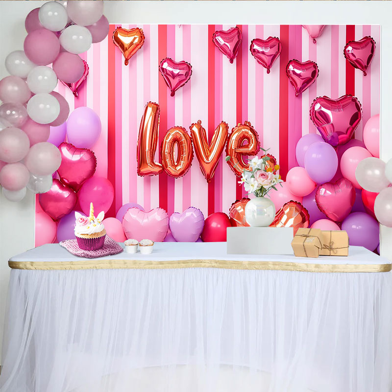 Lofaris Valentine's Day LOVE Backdrop, Pink Striped Balloon Cluster Romantic Photography Background