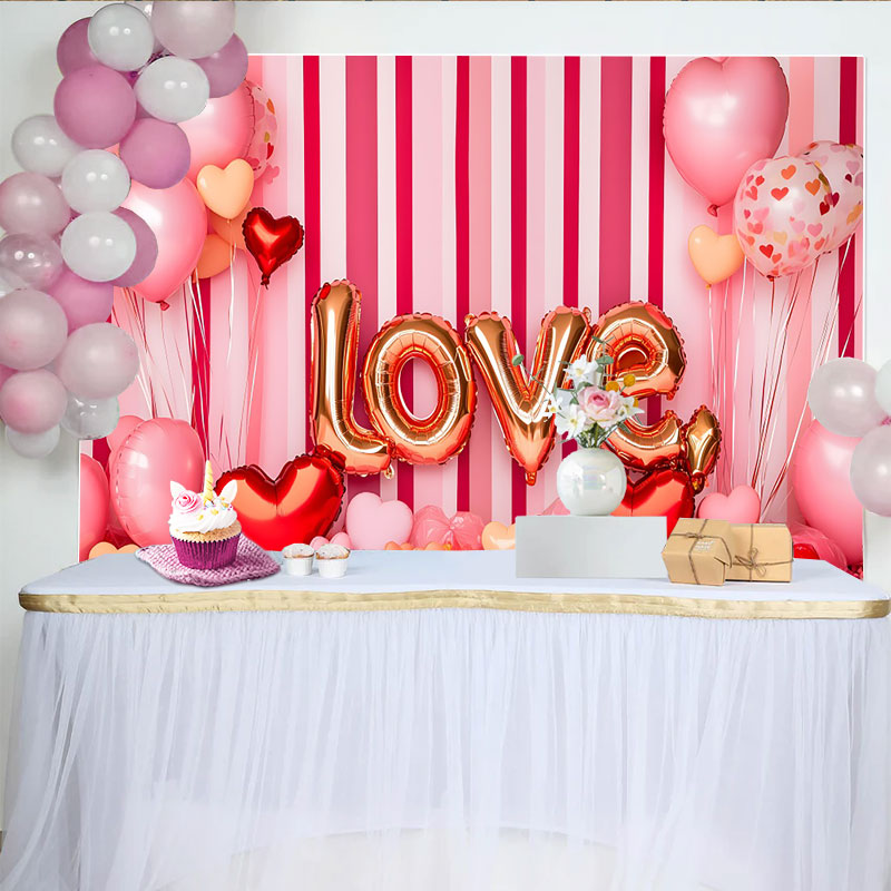 Lofaris Valentine's Day LOVE Backdrop, Pink Striped Heart Balloons Romantic Photography Background