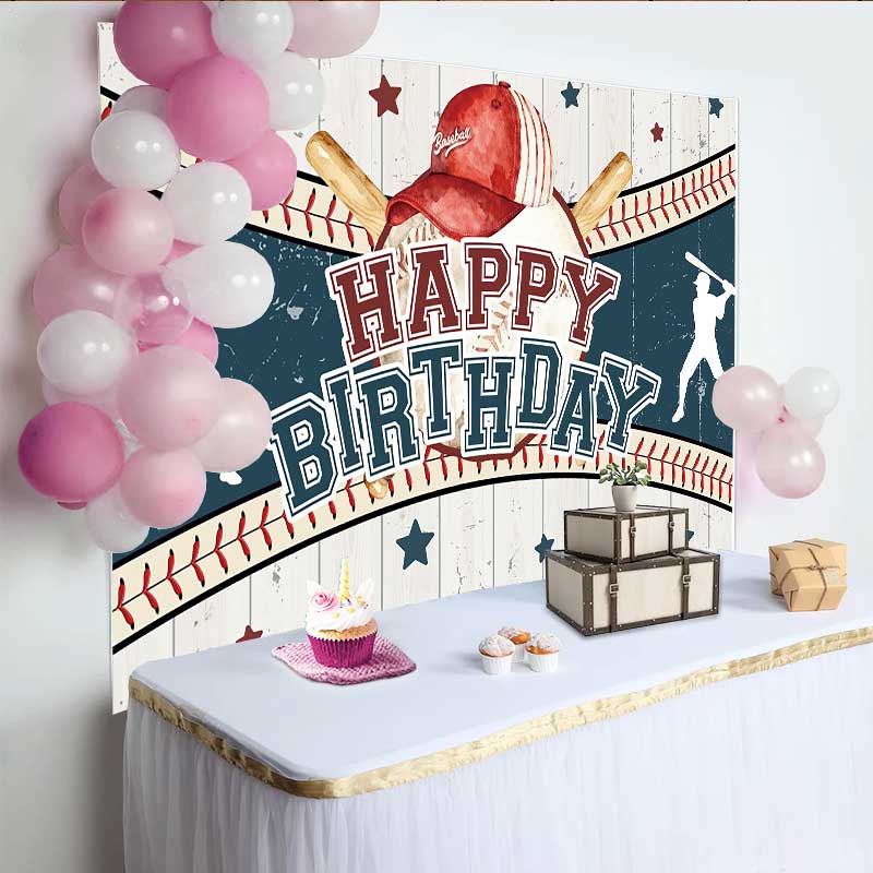 Lofaris Vintage Baseball Birthday Backdrop, Red Cap and Bat Sport Theme Party Banner for Boy
