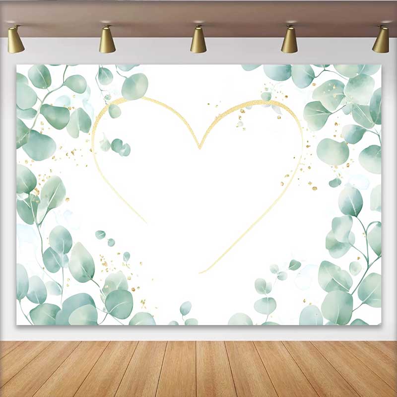 Lofaris Wedding Backdrop, Green Eucalyptus Leaves Gold Heart Outline Bridal Decor