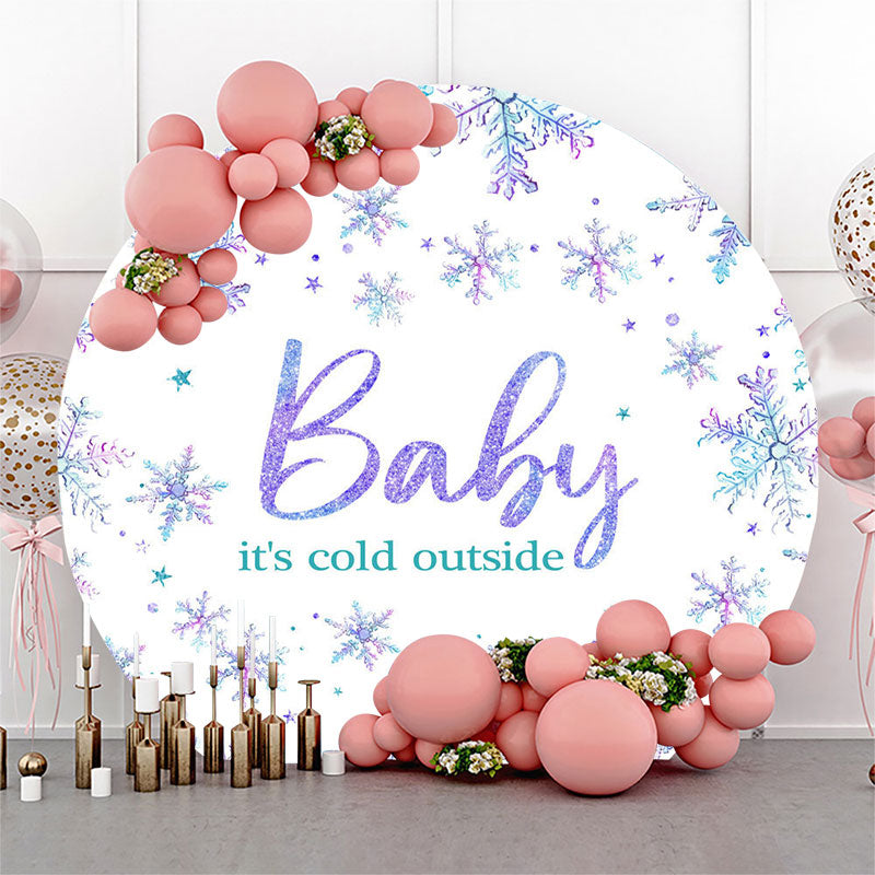 Lofaris White Purple Snowflake Round Baby Shower Backdrop
