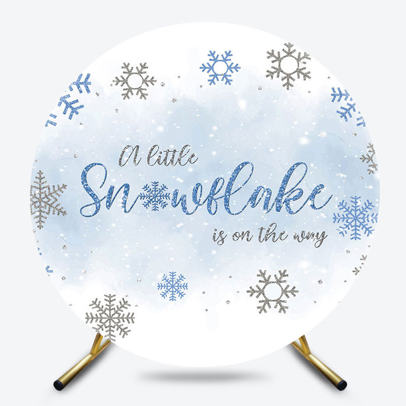 Lofaris Winter Blue Snowflake Round Baby Shower Backdrop