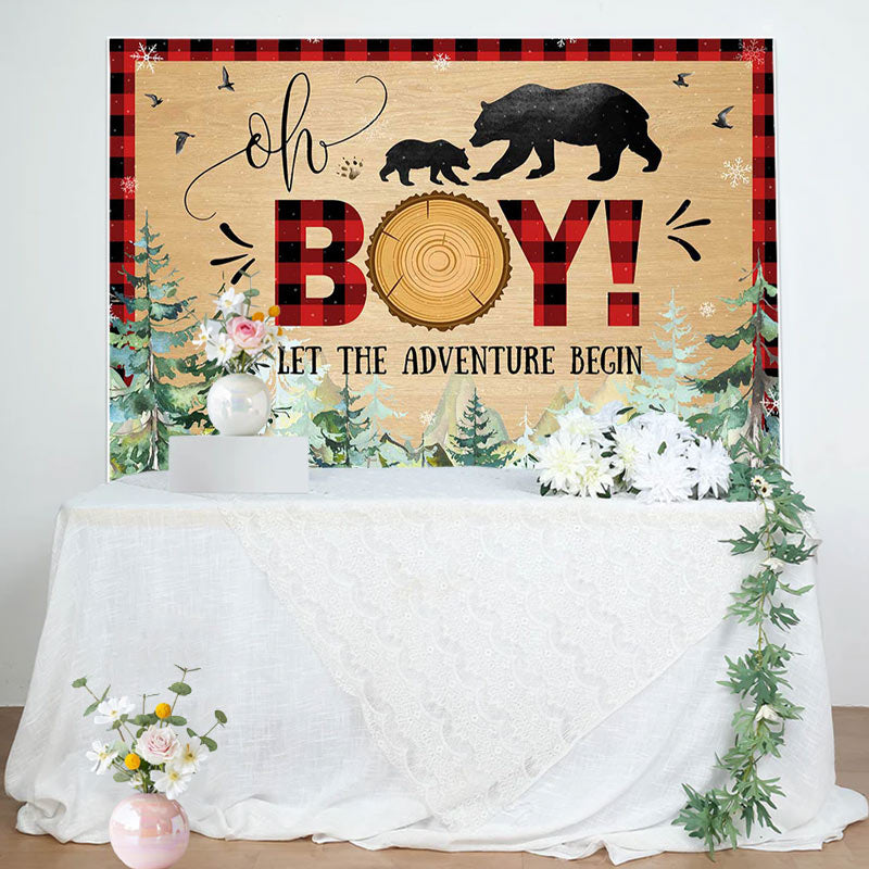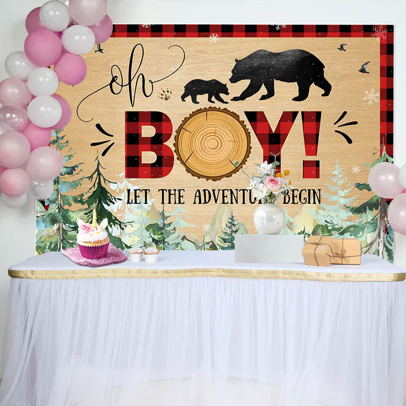 Oh Boy Bears Adventure Begin Baby Shower Backdrop