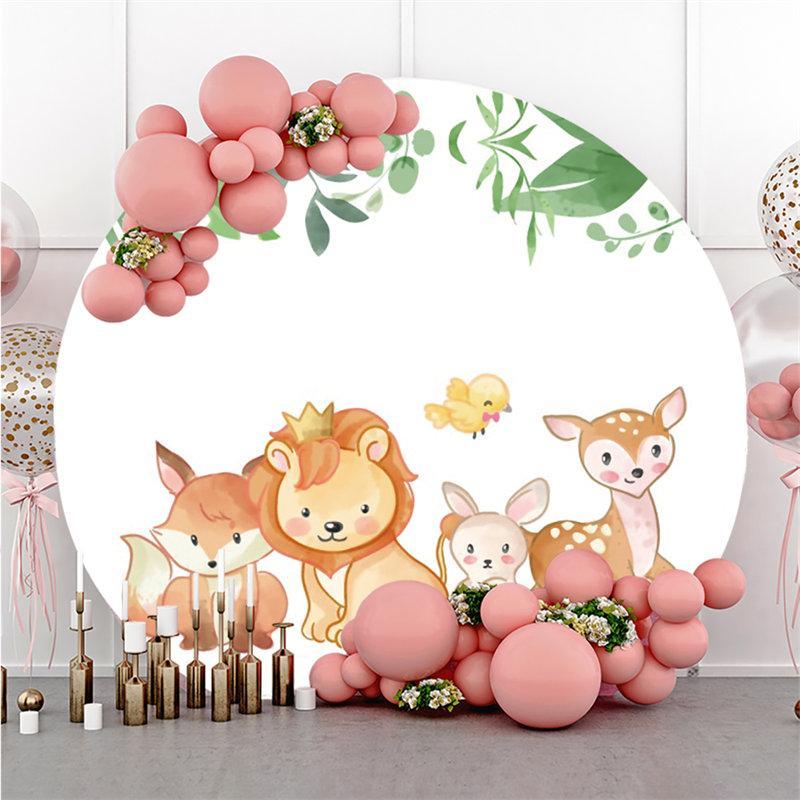 Pink Flowers Cute Lion Balloon Round Backdrops for Baby