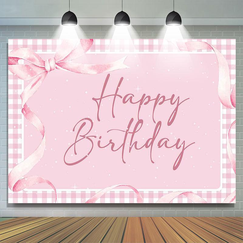 Pink Gift Bow Tie Plaid Backdrop For Birthday Party