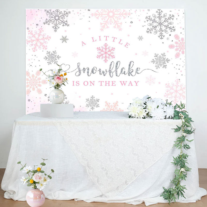 Pink Little Snowflake Winter Baby Shower Backdrop
