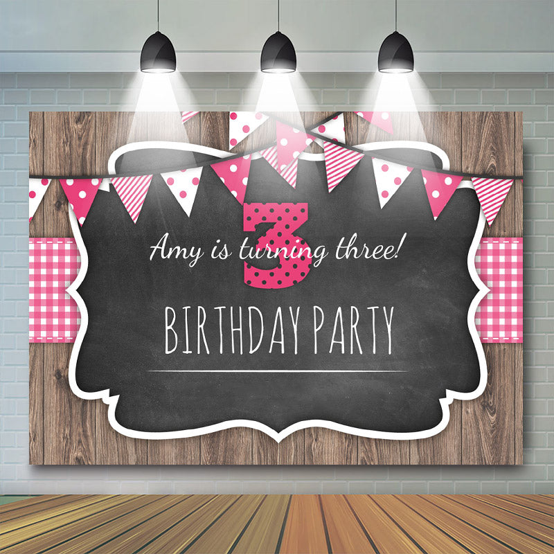 Pink Wooden 3rd Birthday Girl Party Backdrop