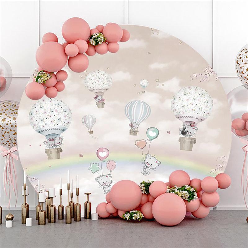 Rainbow And Teddy Bear Round Girls Baby Shower Backdrop