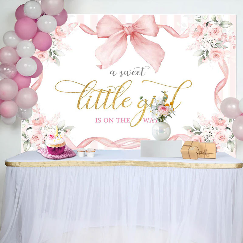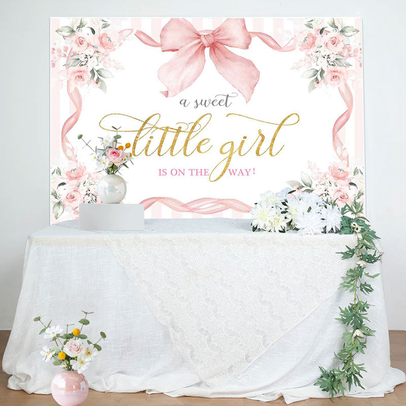 White Pink Floral Bow Tie Sweet Little Girl Backdrop