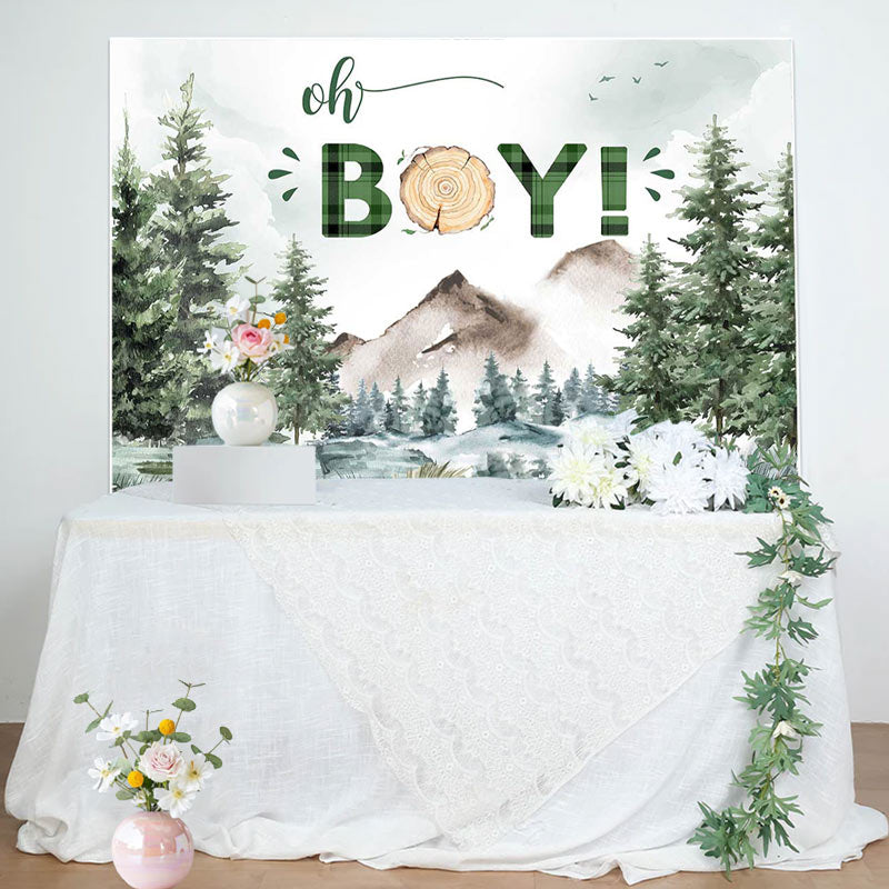 Wild Field Forest Trees Oh Boy Baby Shower Backdrop